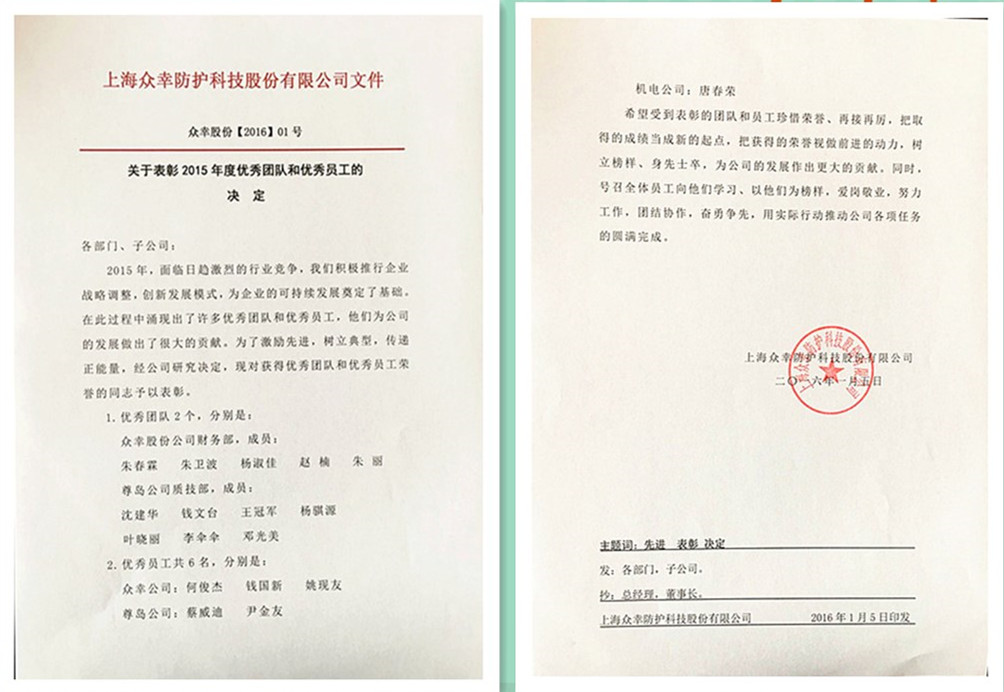 關于表彰2015年度優秀團隊和優秀員工的決定